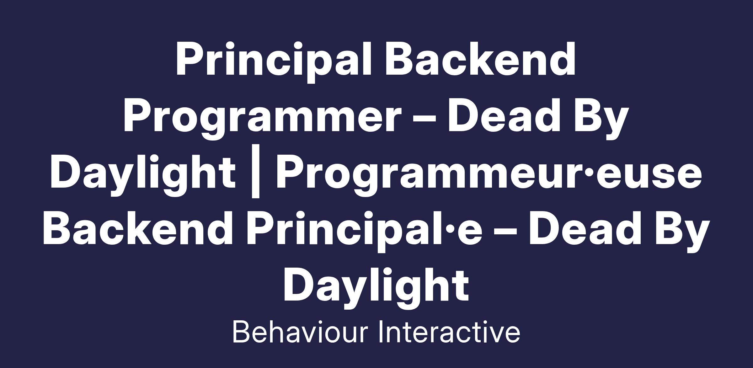 Principal Backend Programmer – Dead By Daylight | Programmeur·euse Backend Principal·e – Dead By Daylight