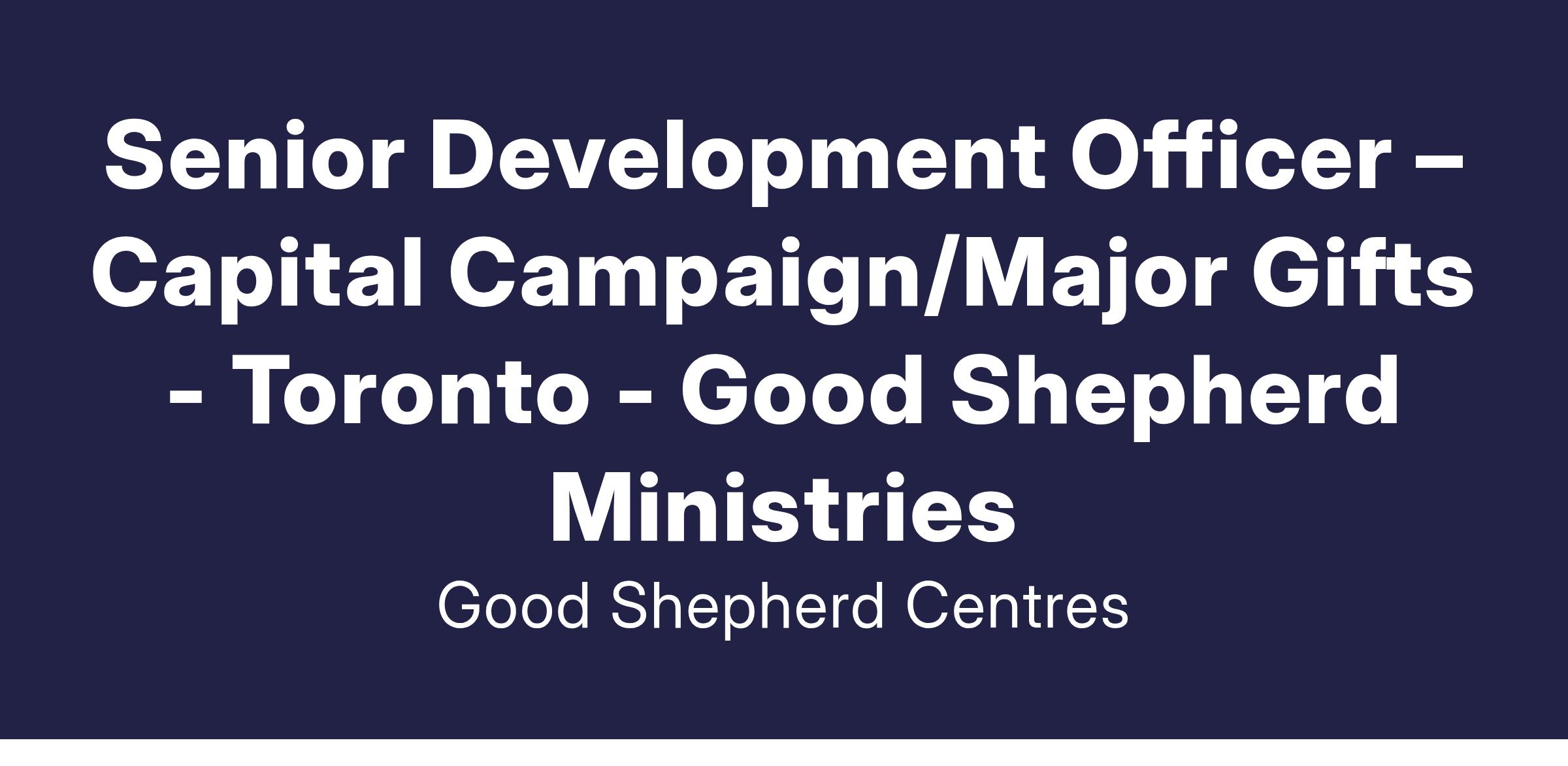Reporting to the Director, Fundraising and Public Relations, the Senior Development Officer enhances the dignity and quality of life of our clients through his/her assumed responsibility for the advancement of a major gifts program that will identify, qualify, cultivate, solicit, and steward major, capital funding, and planned gift donors and prospects, thereby enabling Good Shepherd Ministries to respond to the needs of the homeless, disadvantaged and marginalized in our community.
